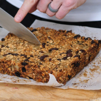 This baked energy bar with apple, oats, puffed rice and raisins is perfect for when you are out and about, or competing on a hot summer’s day and need a tasty, energy-packed snack to keep you going