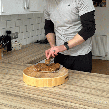 Place this into the fridge for at least an hour to firm up and set, before slicing into 10 portions.
